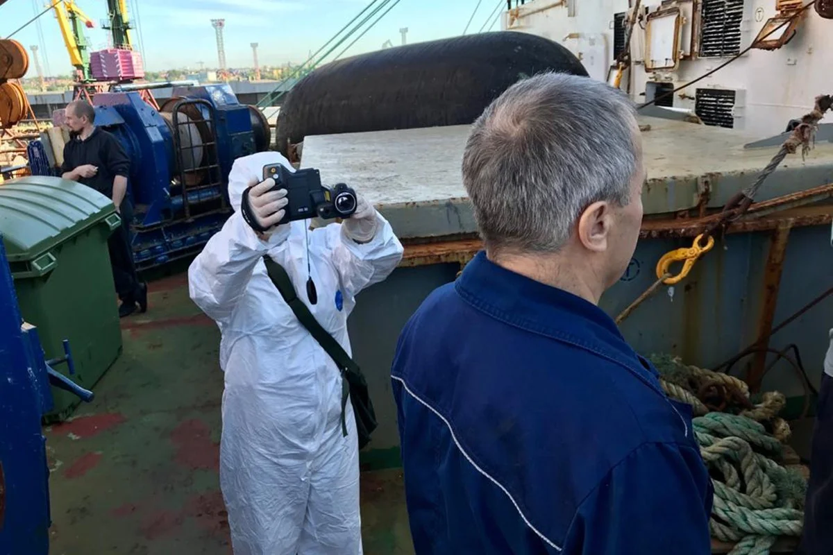 «Сегодня в 9 часов утра на траулер была направлена бригада Областной инфекционной больницы в составе двух врачей и двух медицинских сестер. Врачи осматривают всех, кто находится на этом судне, а средний медперсонал проводит забор биоматериала для тестирования на COVID-19», – сообщил главный внештатный инфекционист министерства здравоохранения Калининградской области Игорь Иванов.
