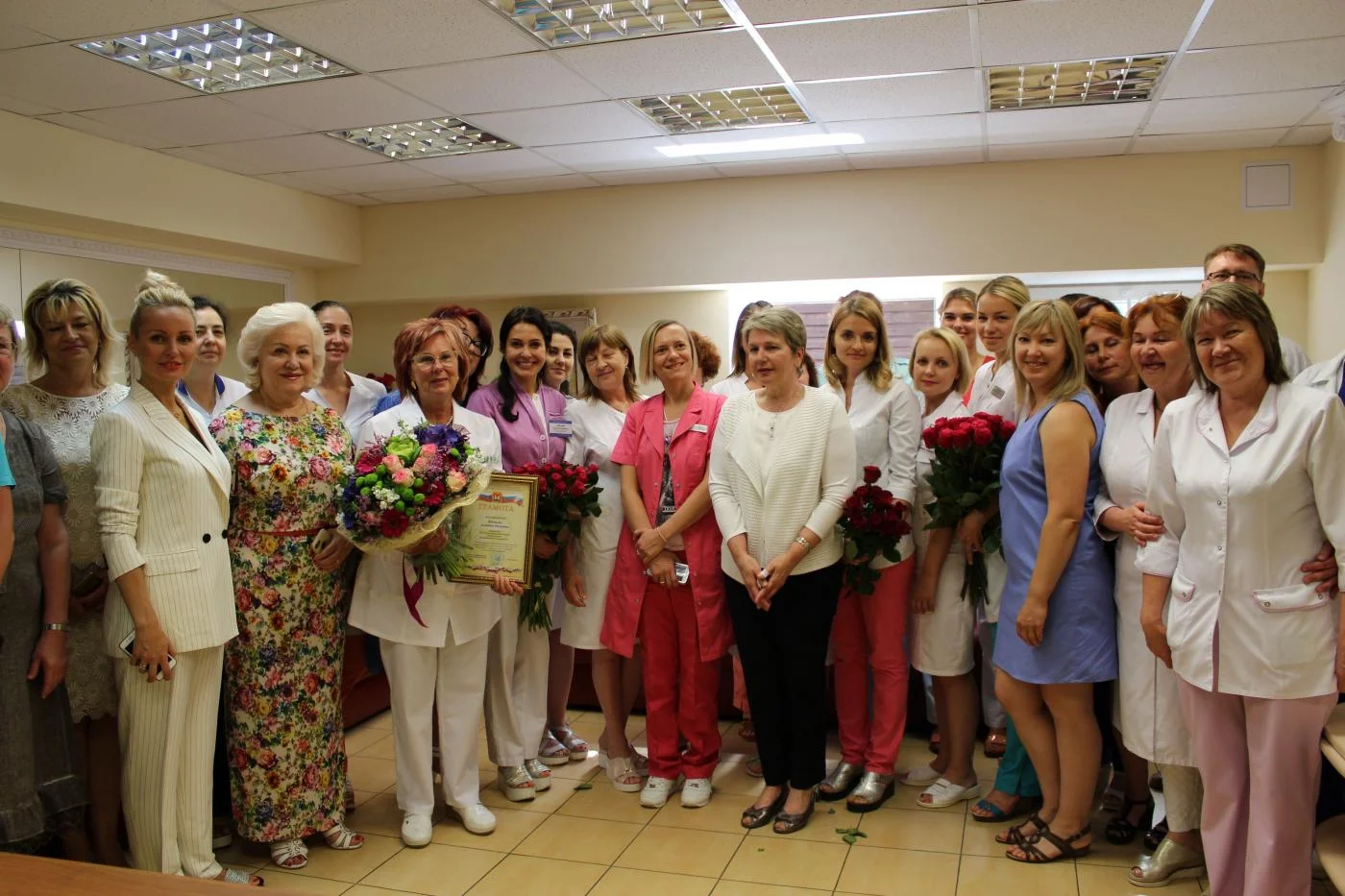 Отличника здравоохранения РФ, заслуженного врача РФ Людмилу Булынину в конференц-зал больницы пришли поприветствовать советник губернатора Татьяна Груничева, начальник отдела охраны здоровья материнства и детства Ирина Черкес, главный врач КОКБ Роман Висков, коллеги по лечебному учреждению.
