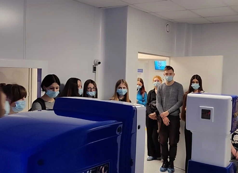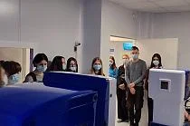 В рамках сотрудничества между медицинскими и общеобразовательными учреждениями региона по профориентации в гости к сотрудникам новой городской поликлиники, открывшейся в прошлом году, пришли ученики 9-11-х классов калининградской школы № 3, которые хотят связать свою жизнь с медициной, всего 17 человек.