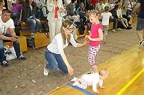 Праздник открыли веселые старты. За малышей, выполнявших различные спортивные задания, на трибуне малой арены дворца спорта активно болели их мамы и папы, бабушки и дедушки.